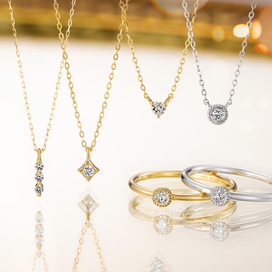 11月7日(金)には、3ピースのメレダイヤモンドが連なり、まるで自分の一部のように馴染むネックレス『Treluce -トレルーチェ-』を、11月28日(金)には、世界に一つしかない形を楽しめるバロックパールのコレクション『Perlina -ペルリーナ-』からチャーム、ピアス、ネックレスを発売。いずれもケイウノ直営店、公式ブランドサイトにて販売します。