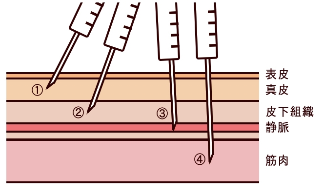 皮膚の表皮とすぐ下の真皮の間に注射します。