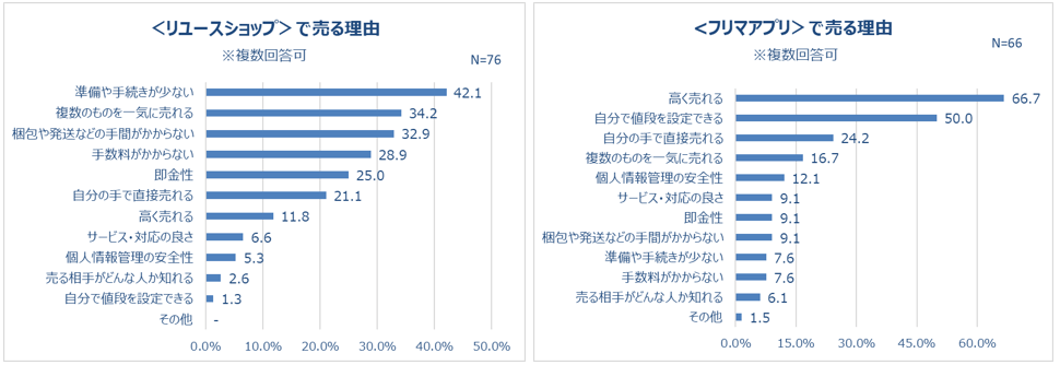 理由「準備や手続きが少ない」。「フリマアプリ」で売る人も約4割。価格を重視する傾向