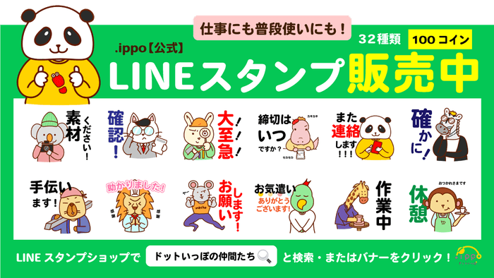 ドットいっぽのホームページ内で使われている動物のイラストを使ったLINEスタンプを発売しています。