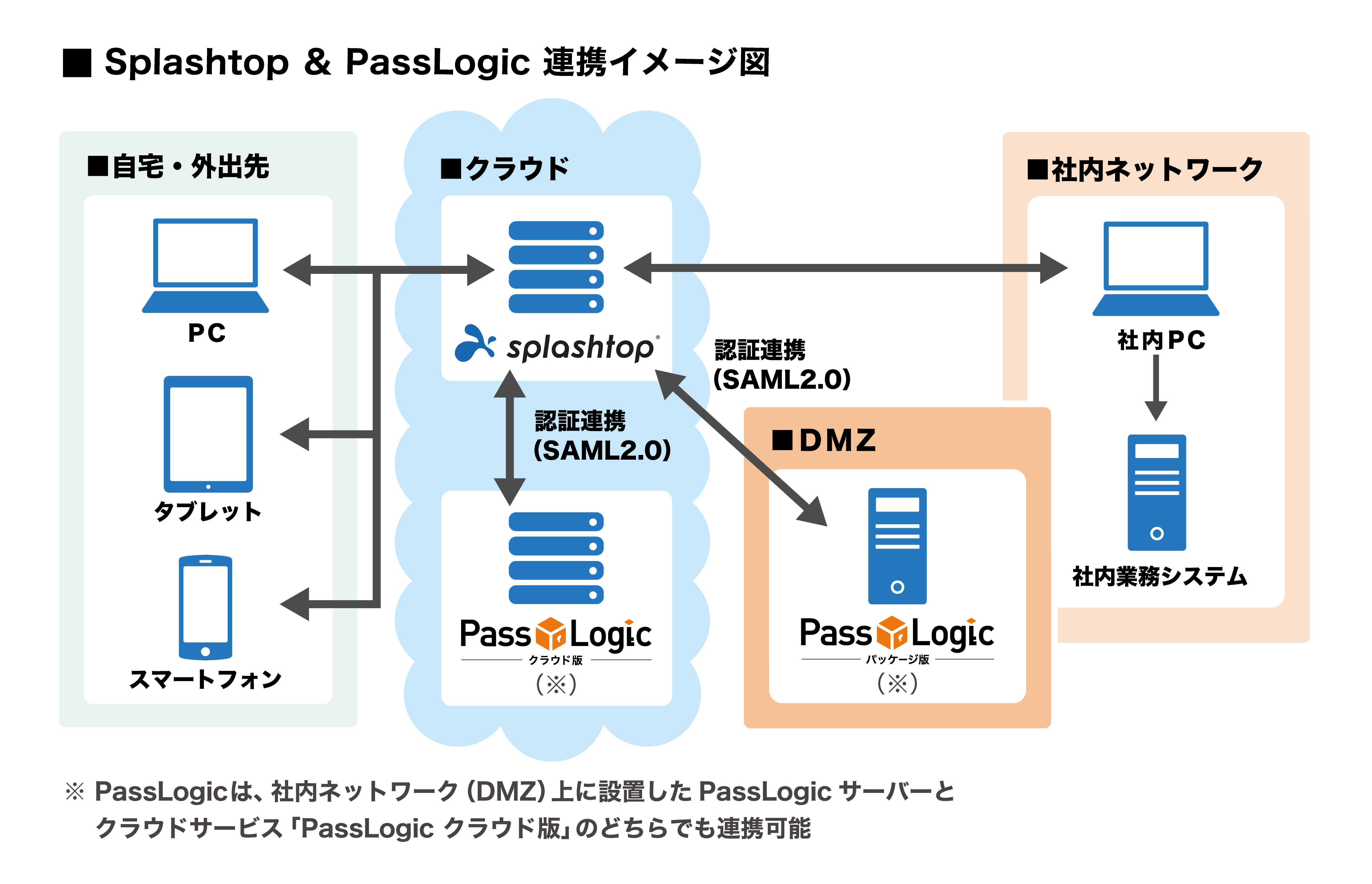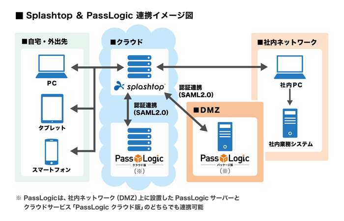 リモートデスクトップサービス「Splashtop」と、 認証セキュリティシステム「PassLogic」が連携完了 ~高速リモートデスクトップを 「トークンレス・ワンタイムパスワード」で安全に!~