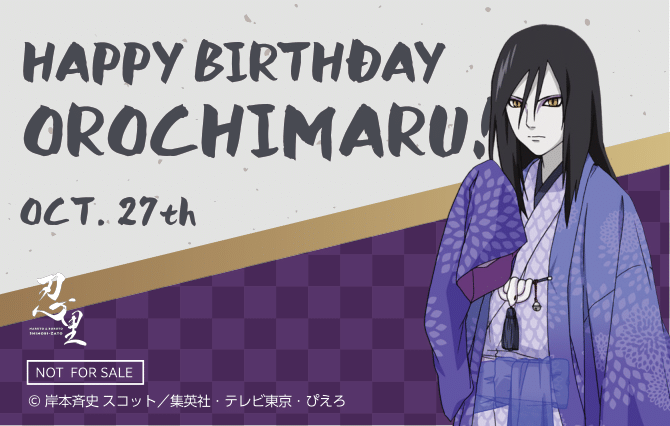 本イベントでは、これまでに忍里でイベントを行ってきたキャラクターたちの誕生日をお祝いする、忍里オリジナルのバースデーカードをご用意いたします。10月は「うずまきナルト」「大蛇丸」をお祝いします!