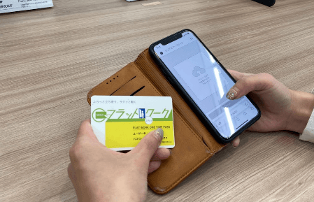 3. 店内に設置されたプリンターにICカードをタッチすることで、プリントを利用できます。(写真右)