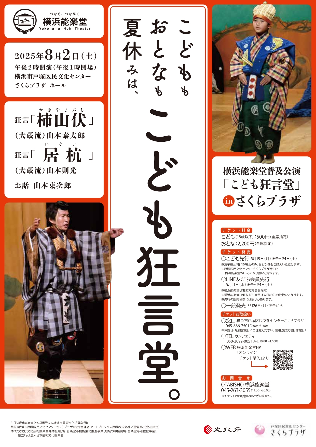 横浜能楽堂(公益財団法人横浜市芸術文化振興財団)主催、こどももおとなも夏休みは、こども狂言堂。『横浜能楽堂普及公演「こども狂言堂」in さくらプラザ』が2025年8月2日 (土)に横浜市戸塚区民文化センターさくら プラザホール(神奈川県横浜市戸塚区戸塚町16番地17)にて開催されます。