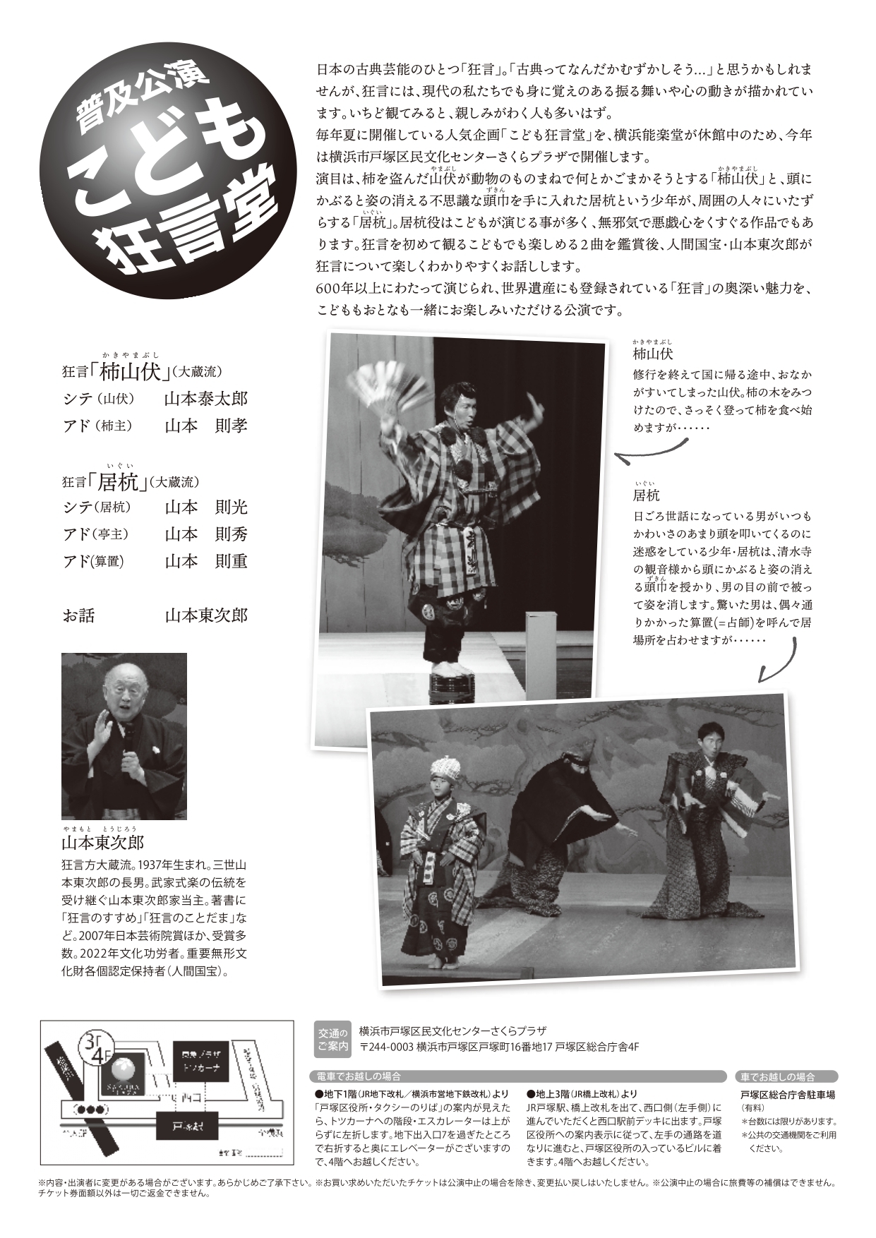 狂言を初めて観るこどもでも楽しめる2曲を鑑賞 人間国宝・山本東次郎が狂言について楽しくわかりやすくお話しします