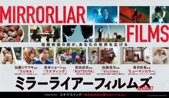 「ミラーライアーフィルムズ」は、伊藤主税氏、阿部進之介氏、山田孝之氏らがプロデュースする、メジャーとインディーズを超えた多彩なクリエイターによる短編映画制作プロジェクト。2024年のSeason6までに著名クリエイターから一般公募まで、俳優、映画監督、漫画家、ミュージシャンなどが監督した47本の短編映画を劇場公開してきた。これまでも地域と連携した取り組みが行われてきたが、Season58からは「企業版ふるさと納税」の制度を活用した地域振興・教育事業として、市民参加の制作・上映、映画制作ワークショップを行う参加型プロジェクトとなっている。8では、Season5に竹中直人氏、大橋裕之氏、榊原有佑氏、Season6に小栗旬氏、浅野忠信氏、Season7に加藤浩次氏、加藤シゲアキ氏、Season8に松田美由紀氏、佐渡恵理氏が監督として参加する。シーズンごとにオムニバス映画として劇場公開後、映像配信サービス「Lemino」内の「MIRRORLIAR FILMS」チャンネルや、JOYSOUNDの対象機種を導入する全国のカラオケルームで利用できるサービス「みるハコ」で順次展開予定。
