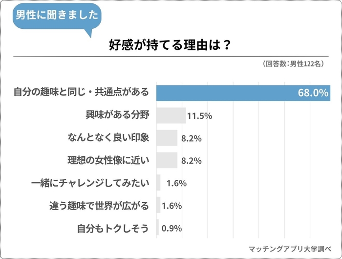 女性もやっぱり、「自分の趣味と同じ・共通点がある」が好感が持てる理由