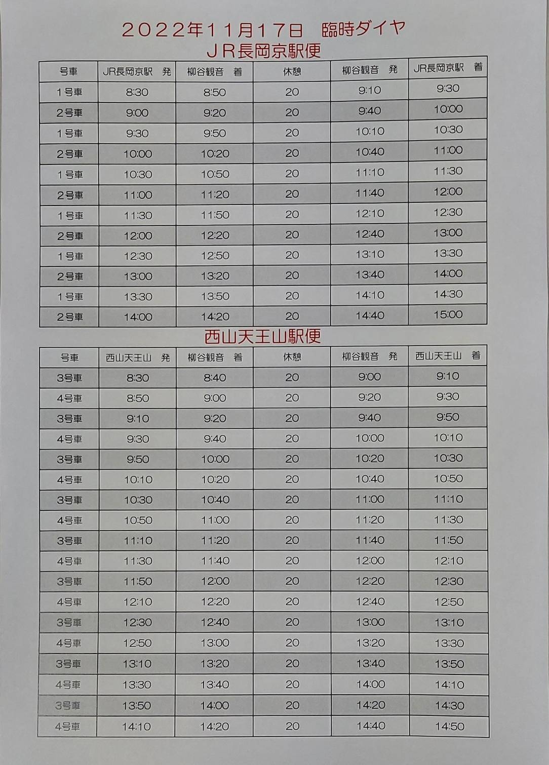11/17(木)はご縁日シャトルバスを増便、1時間延長運行します。