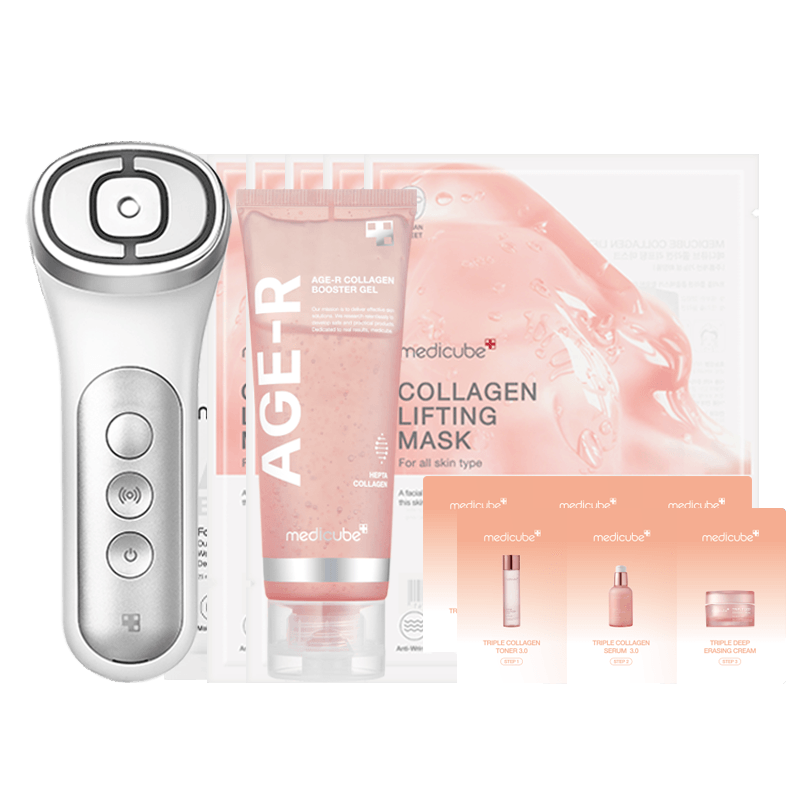 「エージーアール(Age-R)」はメディキューブが開発した最初の美顔器です。中周波(EMS)を利用した小顔ケア美顔器で、気になる部分を引き締め、フェイスラインのケアを助けます。筋肉を動かし、普段使えていない表情筋などを運動させて顔の筋肉を鍛えることで、見た目年齢の引き下げ効果を導きます。