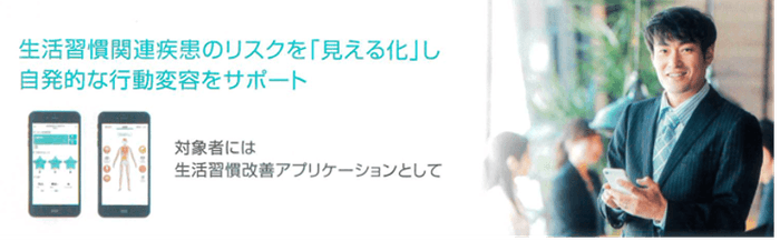 「健康支援サービス(MIRAMED)」は、東京大学COI(※2)が開発した行動変容促進システムを活用した特定保健指導支援システム/生活習慣改善アプリケーションサービスです。AIを活用して将来の生活習慣関連疾患のリスクを「見える化」することで、カラダの状態を自分事化し、自発的な動機付けを促す各種機能により対象者の行動変容と健康増進をサポートします。特定保健指導の対象者と管理者・指導担当者のそれぞれが利用できる2in1のサービスです。「健康支援サービス(MIRAMED)」が行動変容のパートナーとして、対象者の毎日に寄り添うことで、対象者の脱落を防ぐほか、遠隔面談やチャットといった機能により非接触かつ対象者の生活のペースを尊重した特定保健指導を実現します。