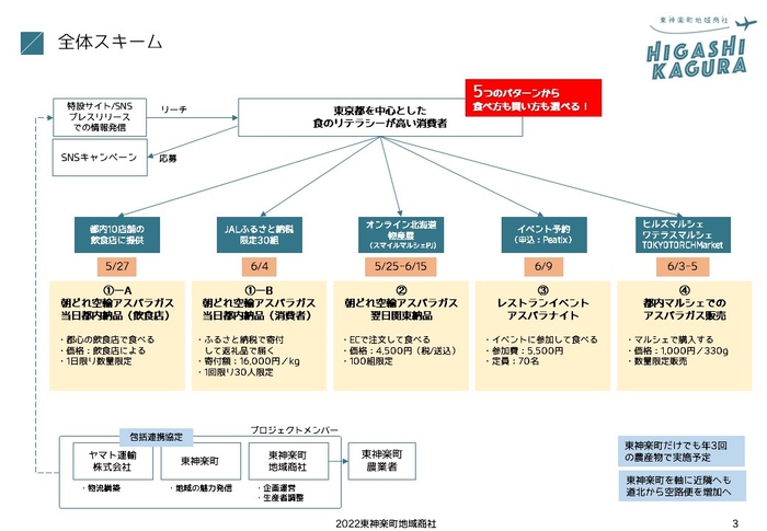 町のもったいないを価値化する東神楽町地域商社 (北海道東神楽町、代表:脇坂真吏、以下 商社)は、ヤマト運輸株式会社(以下 ヤマト運輸)・東神楽町と共同で、5月27日に飛行機を活用し朝どれアスパラガスを東京都内の飲食店へ当日夜にお届けするプロジェクトを実施いたします。