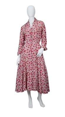 Pink floral shirt dress designed by Walker for her clothing label The Chelsea Design Company