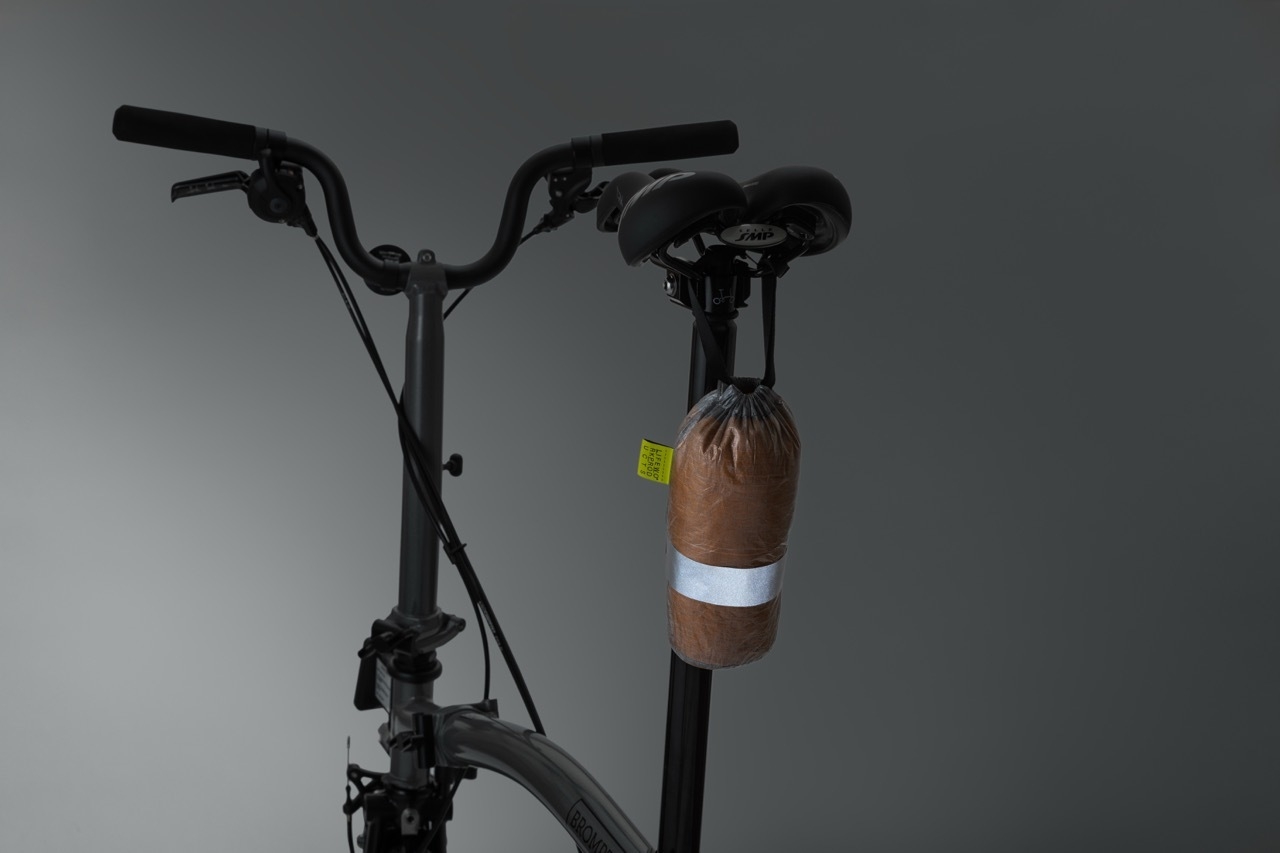 極薄で軽く強いDyneema(R) Composite Fabricを使い、雨具や工具などを超軽量・コンパクトに持ち運べるサドルバッグです。「Bicycle Bag for Brompton with Dyneema(R)」の収納袋としても使用できます。