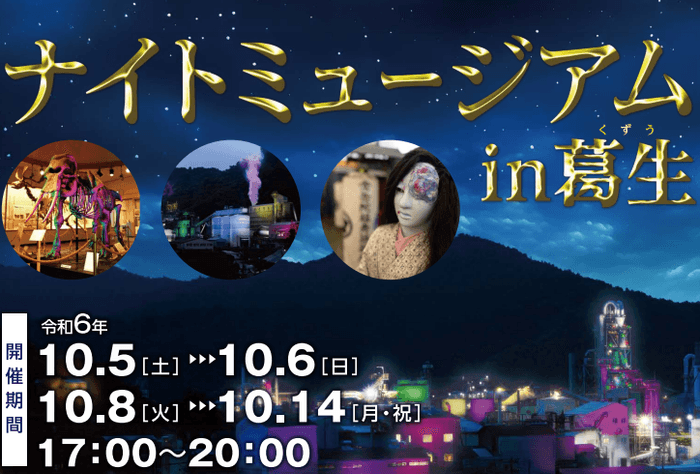 葛生(くずう)の街一帯をミュージアム化するイベントを開催します。 石灰工場のライトアップなど見どころが沢山あります。 デジタルスタンプラリーも開催!ぜひ夜の葛生に遊びに来てください!