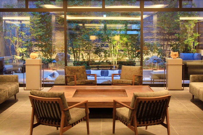 本館および温浴棟の間には、四季折々の箱根・仙石原の移ろいを感じられるテラスを設置。