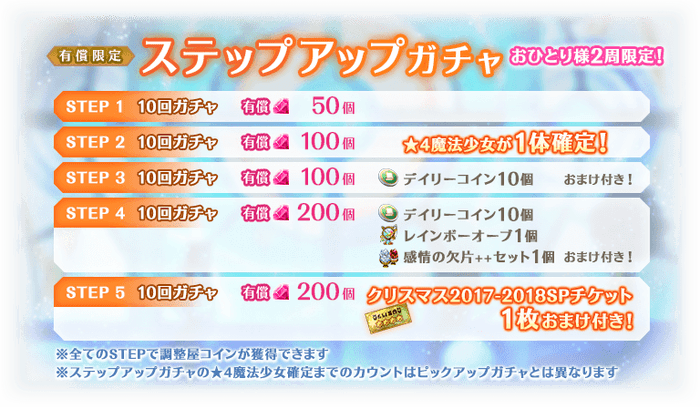 有償限定 ステップアップガチャ クリスマス魔法少女2017-2018編