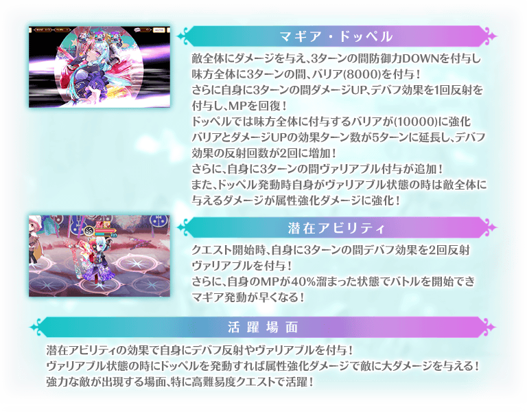 本ガチャでは、2017年から2018年に登場したクリスマスの★4魔法少女とメモリアが期間限定で登場いたします。