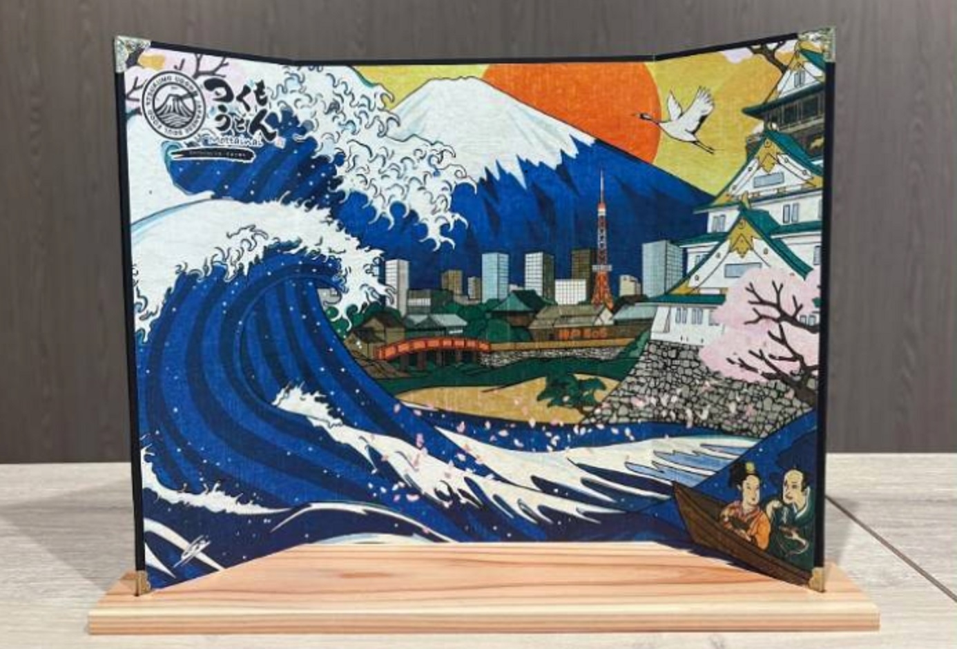 テーブルの上で日本文化を演出できる『ミニ映え屏風』は、GO氏描き下ろしのポップアートを卓上サイズで再現。料理の背景に置くだけで“映える”写真が撮れ、訪日観光客にもぴったりの日本を感じられる新しいお土産アイテムです。