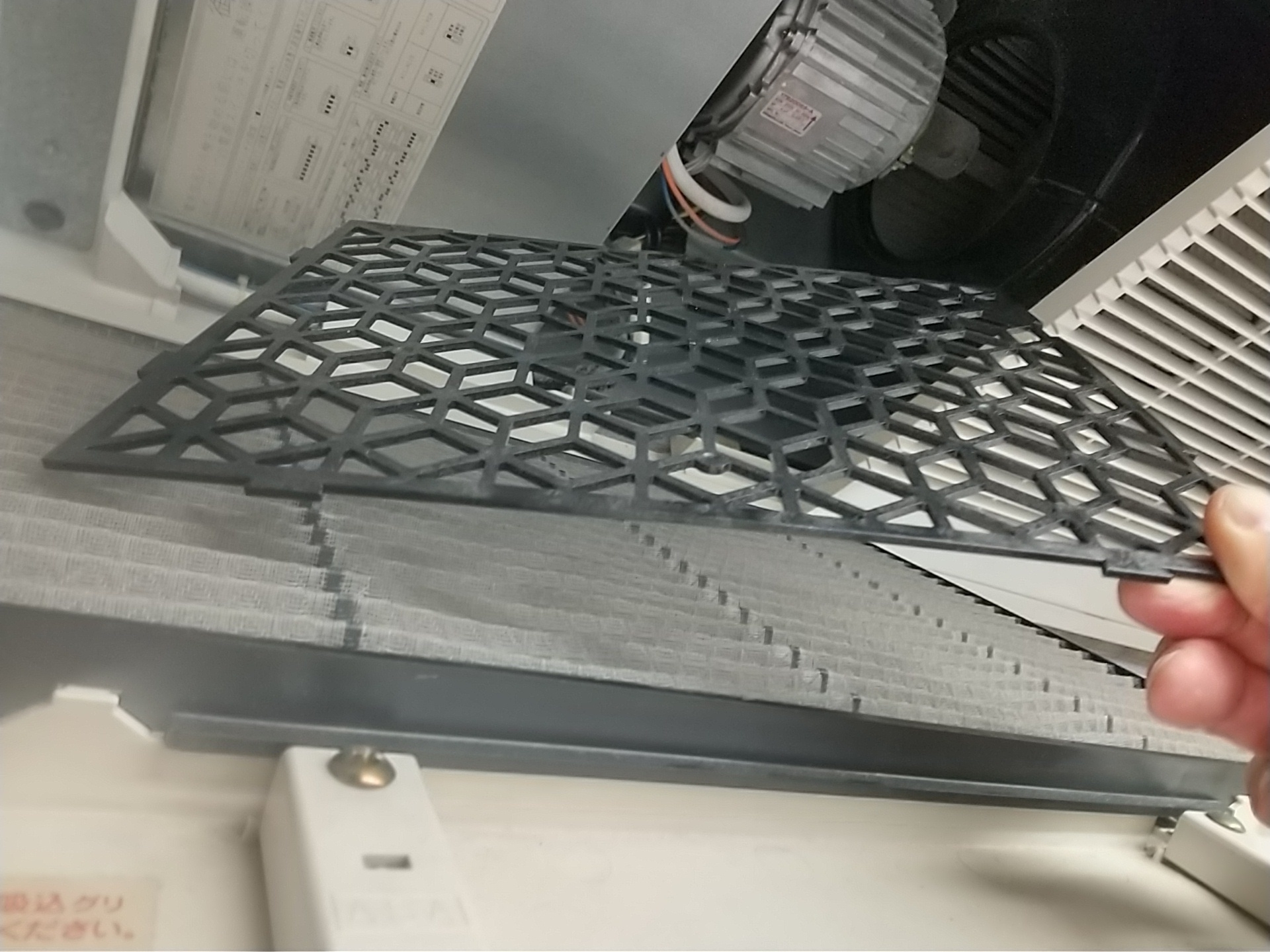 エアコンの表のパネルカバーを外してフィルターの上に置くだけ。天井埋込エアコン、据置型、壁掛けエアコンなど業務用、家庭用エアコンの両方に取付できます。