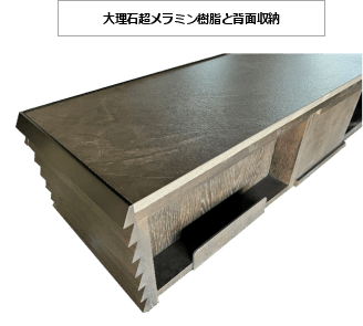 ・重量のある大型テレビに対応するため、ボード天面には表面硬度に優れた大理石調メラミン樹脂板を採用