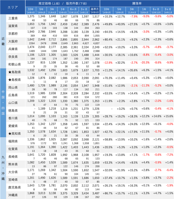 ・騰落率:1位「滋賀県」+27.5%、2位「愛媛県」+24.0%