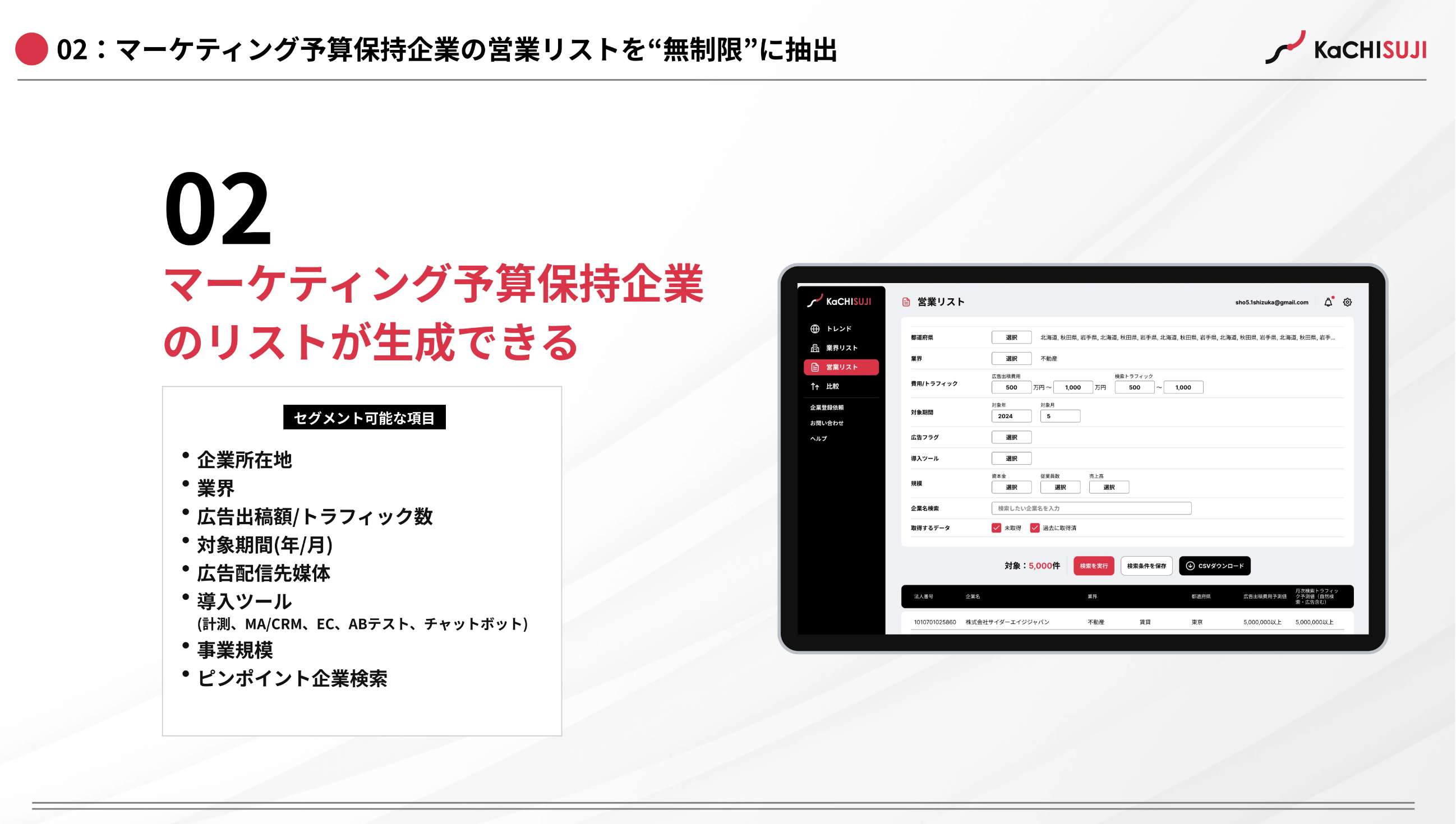 マーケティング業界の方々は、ぜひ「KaCHISUJI」をご利用いただき、その効果をお試しください。