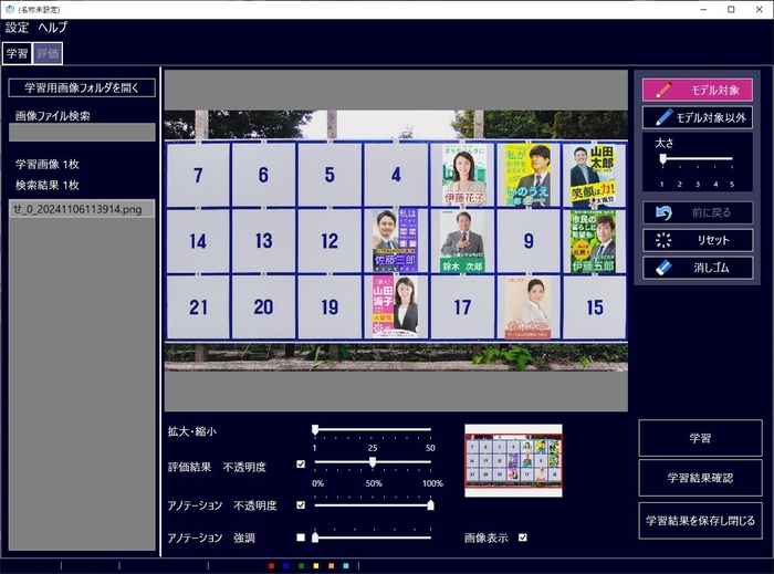新しいSmart MPに、ユーザー自身でモザイク対象をAI学習できる機能が追加されました。当社が独自開発した少量の学習画像で優秀なAIを開発できるエンジンを採用。例えば、ポスターが映ったシーンの画像を数枚学習すると、ユーザー専用のポスターモザイク用AIモデルを開発することが出来ます。