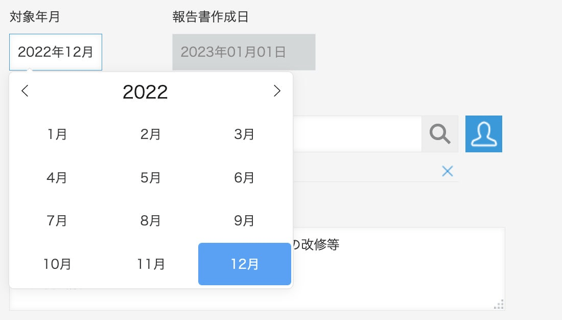 kintoneの標準機能では年月日しか対応していませんが、月報など、日付が不要なケースも数多くあります。