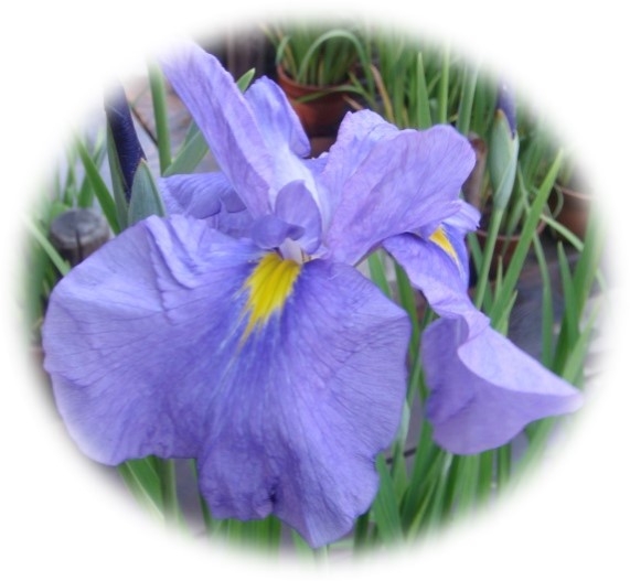 江戸時代後期以降に江戸・東京の地で作出栽培されてきたもので、池のほとりや水田に植わっていたものを斜め上から見下ろすとちょうどいい花姿になるよう改良された花菖蒲です。様々な花形があり、玉咲き、多弁咲きなどのような変わり花までも品種として取り上げ、その変化を楽しみとしました。江戸・東京市中に多く存在した花菖蒲園への集客のためにより美しく、珍しい花を求めた結果ともいわれ、さまざまな文化を何でも飲み込んだ江戸の性格がそのまま花に現れたものともいわれます。
