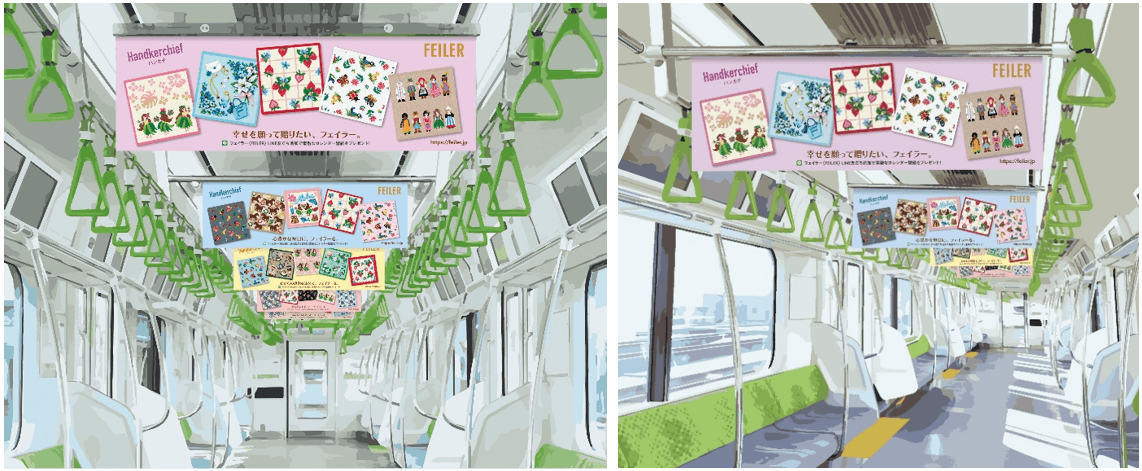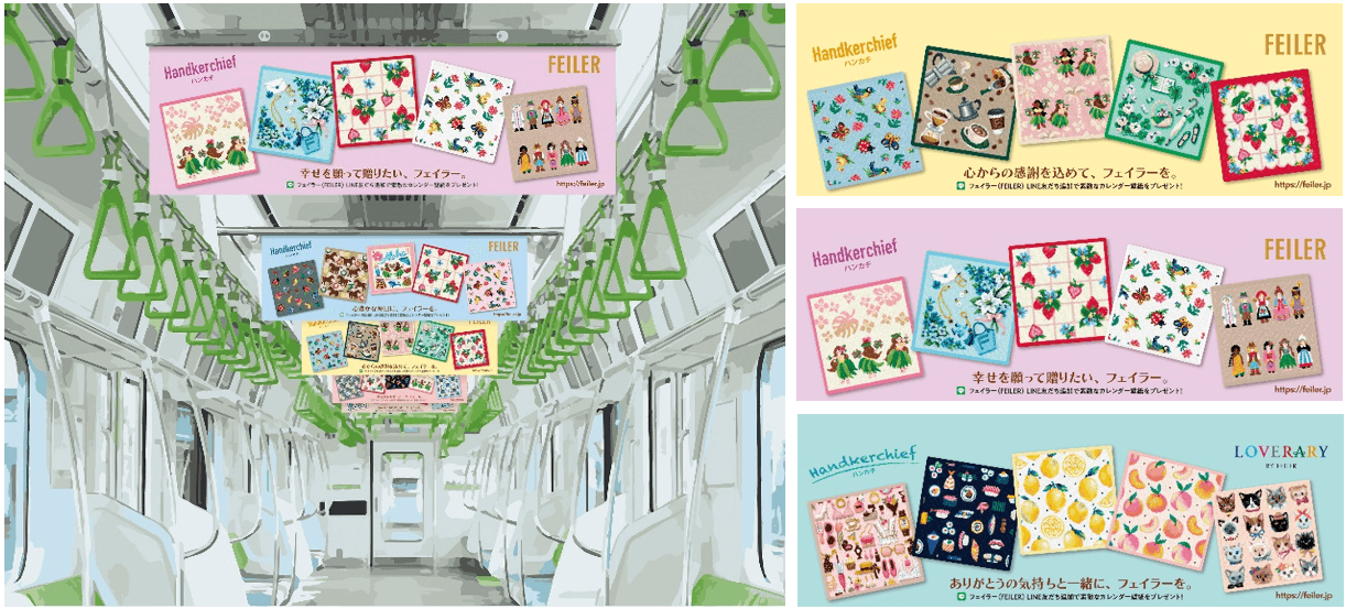 フェイラーがギフトシーズンに伝えたいあなたの気持ちを応援! JR山手線に“幸せのハンカチ”車両が出現! ドイツの人気ブランド・フェイラーのカラフルなハンカチが中づりをジャック!