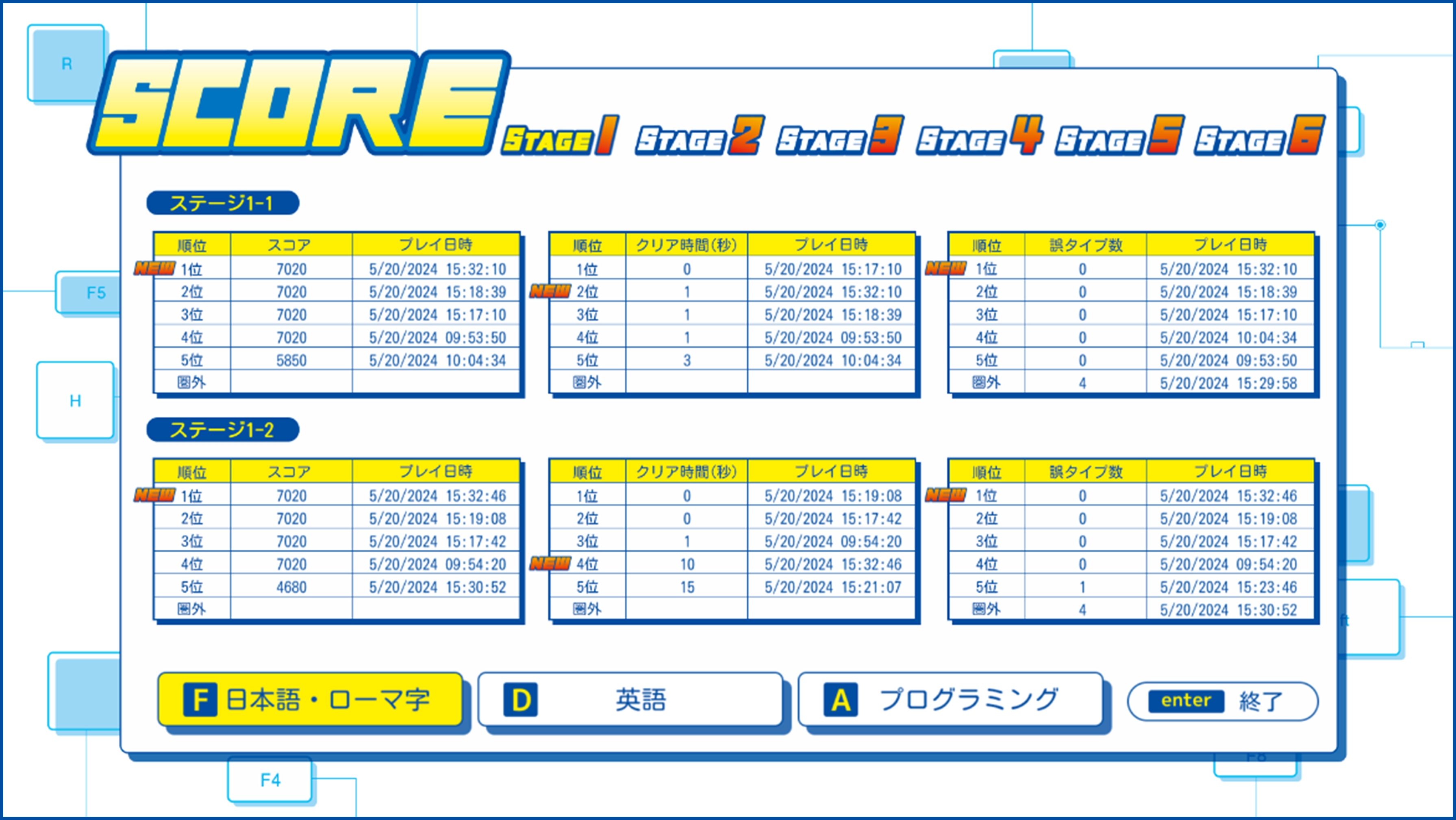 また「日本語・ローマ字入力」モードでは漢字能力検定の各級別(学年別)で出題される問題を変更しています。