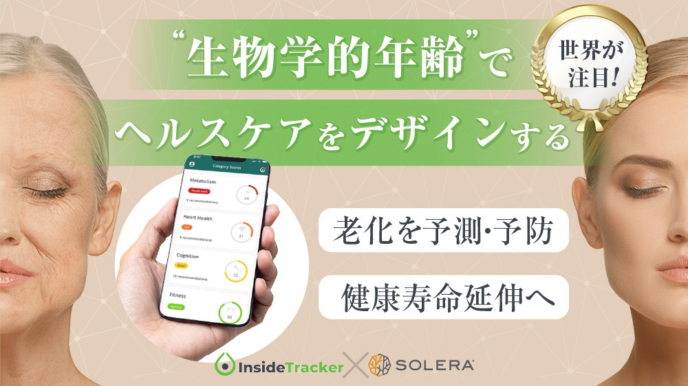株式会社オリーブの木(本社:京都府京都市下京区、代表取締役:村松 正憲、 https://olivetree-wellness.com/ )が運営する『高地トレーニングスタジオSOLERA 京都四条烏丸店( https://solera-kyoto.com/ )』は、最新の科学的技術を駆使し、血液検査により個々の健康状態を分析するのに加え、生物学的年齢を測定し、パーソナライズされた健康改善プランを提供し、持続可能な健康をサポートする米国バイオテック企業が提供する「InsideTracker( https://www.insidetracker.com/ )」を2024年8月9日(金)よりサービスを開始することをお知らせいたします。