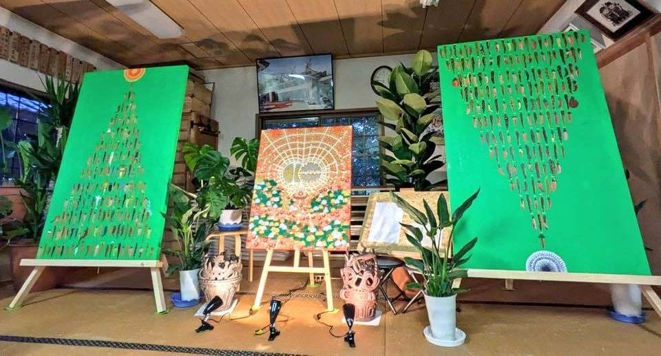 ◇終戦80年企画として、香取海軍航空基地跡「旭緑地公園」にて、平和の願いを込めた、山内若菜の幅12メートルの絵画を、掩体壕型パネル(幅18メートル、高さ4メートル)を制作し展示します。