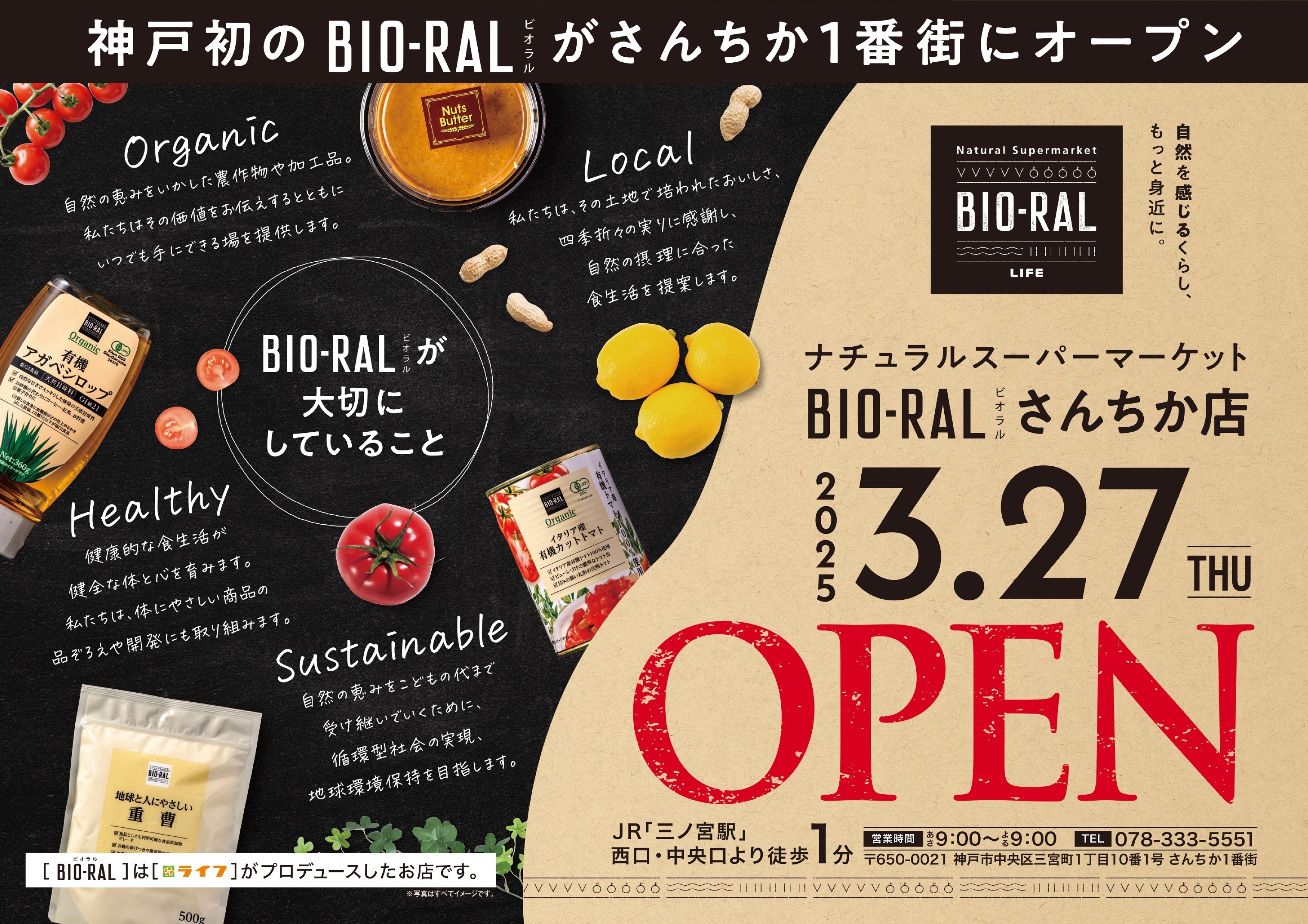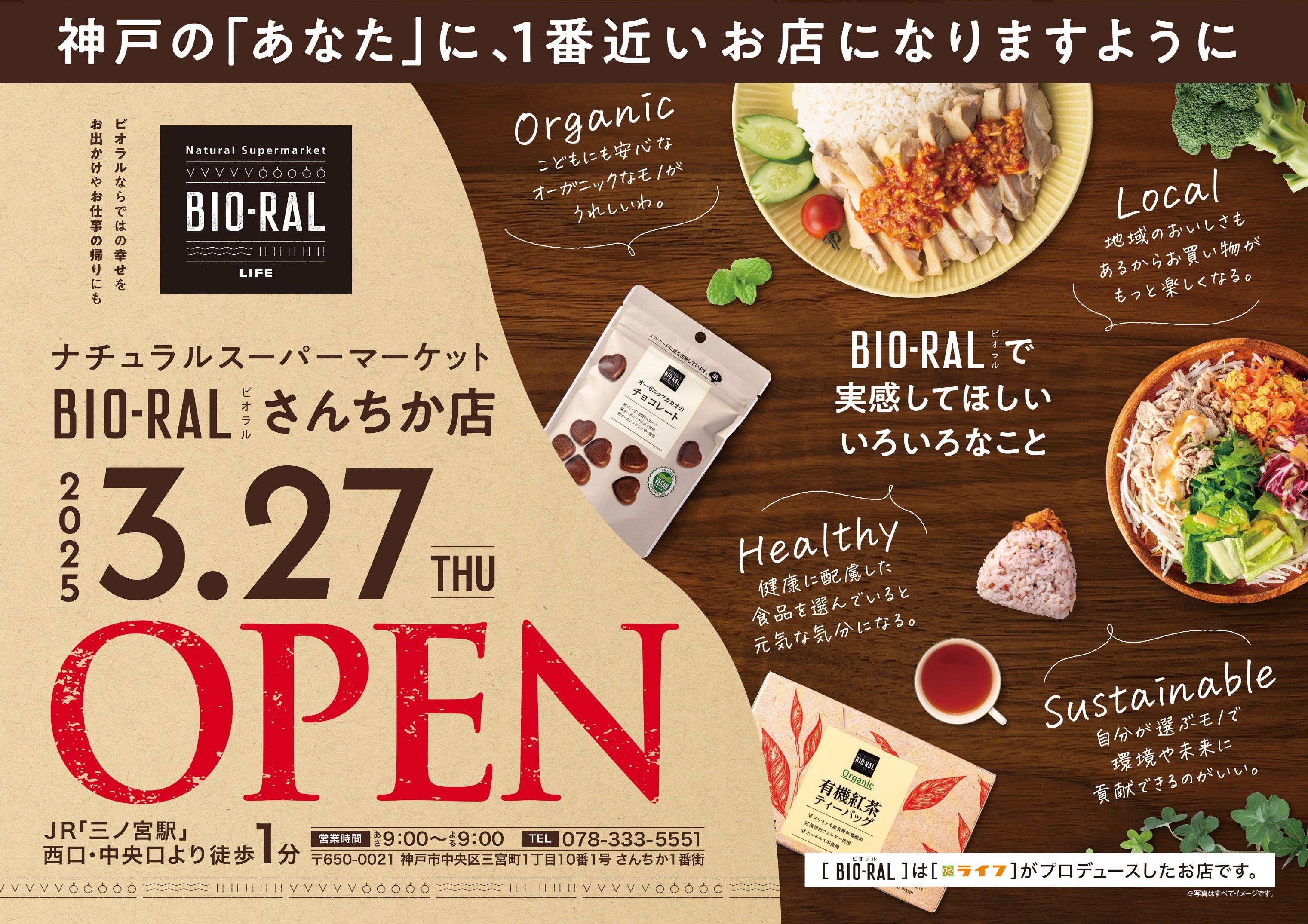 “おいしい” “ワクワク” “ハッピー” をお届けする株式会社ライフコーポレーションは、2025年3月27日(木)、約3年間の改装期間を経てリニューアルオープンを迎える「さんちか1番街」内に、神戸市内初出店となる「ビオラルさんちか店」をオープンいたします。同じく3月にオープンする「ビオラルうめきた店」も含めて、近畿圏では3月にビオラルの新店が2店舗オープンいたします。