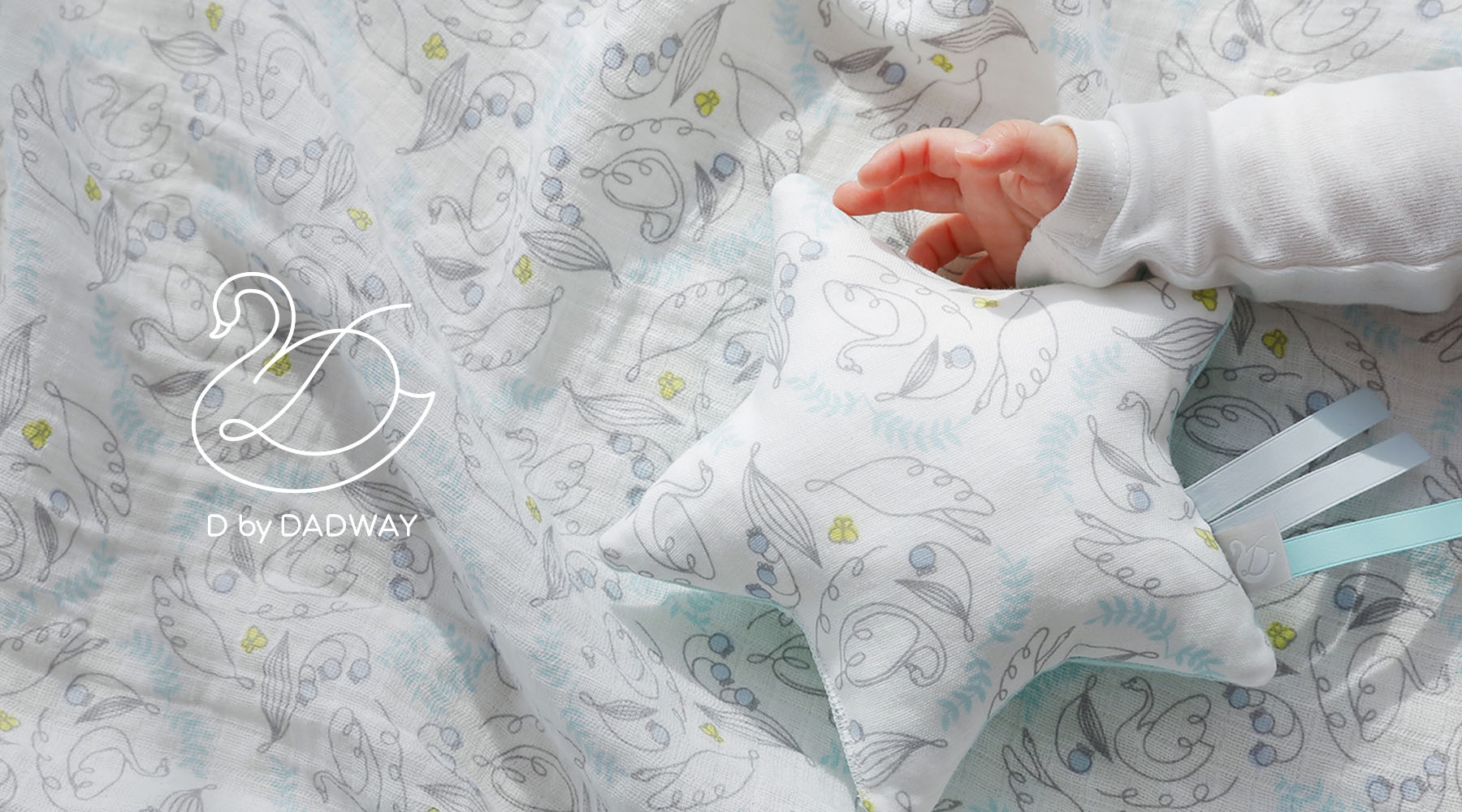 D by DADWAYは世界中の育児用品を紹介する DADWAYから生まれたベビーアイテムを中心としたブランドです。赤ちゃんへ「生まれてきてくれてありがとう」という思いをテキスタイルデザインにのせて創りました。ベビーの誕生により新しくはじまる家族の日常、その暮らしにそっと寄り添う商品をお届けします。