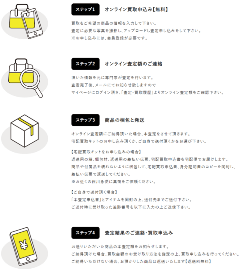 また、もともと中古ブランド品販売買取店に入店することに抵抗がある人にも、利用していただくメリットのあるサービスです。
