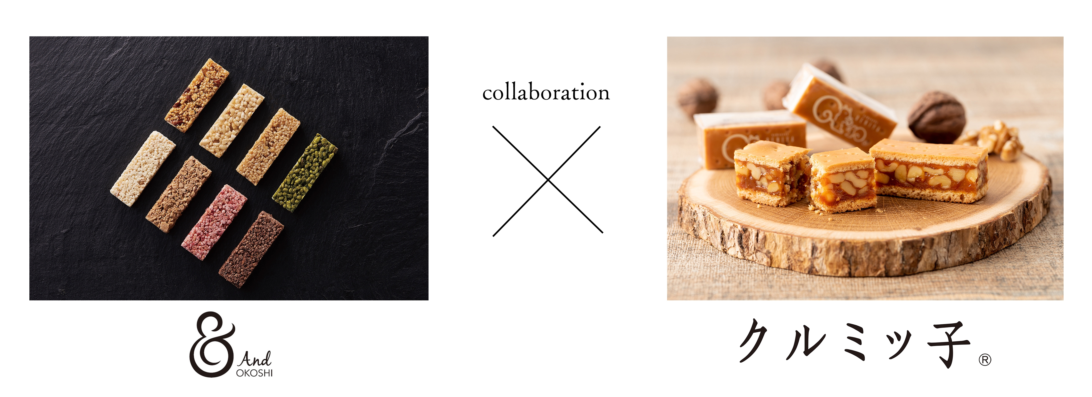 【クルミッ子キャラメル】は、クルミッ子キャラメルソースのほろ苦く濃厚でまろやかな優しい味わいと、香ばしいクルミのほどよい食感を最大限に引き出しました。日本の伝統的なおこしの製法を用いた歯ごたえが魅力の「& OKOSHI」と、クルミッ子キャラメルソースの出会いをお楽しみください。