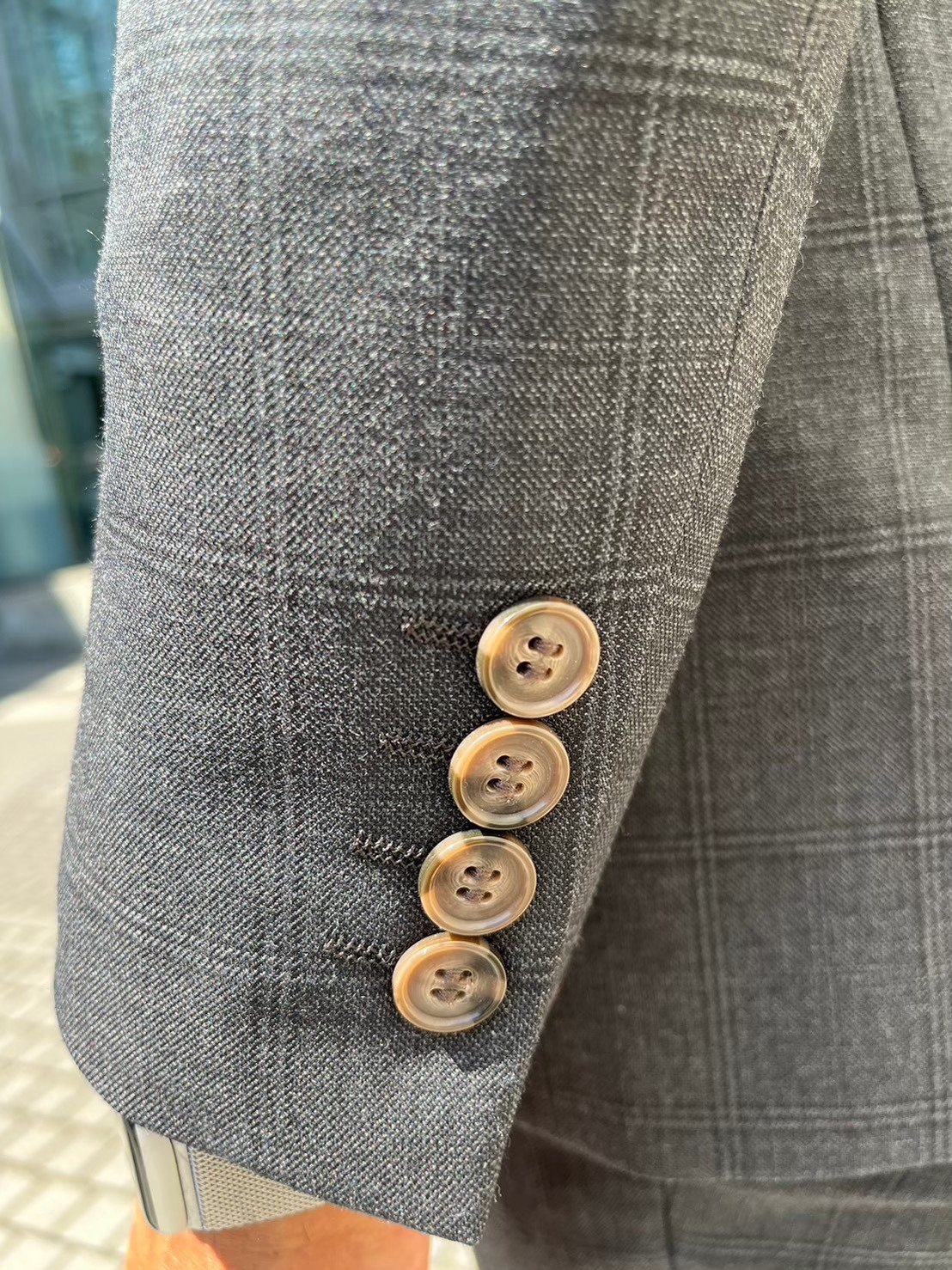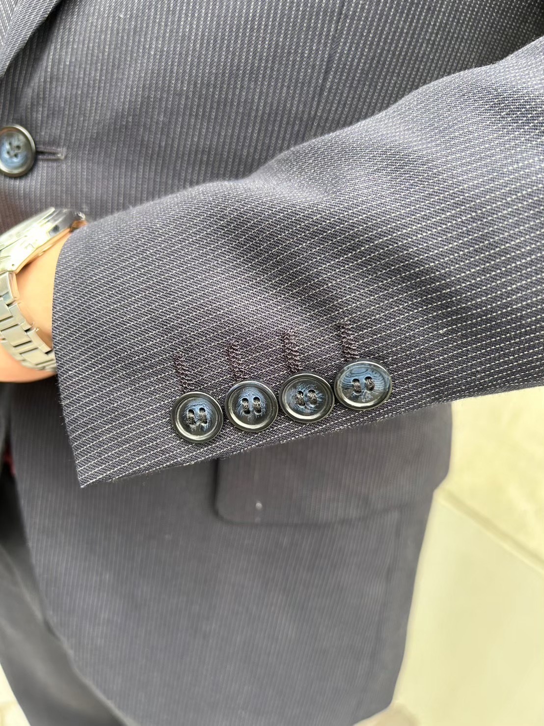 ボタンはシチュエーションに合わせて選ぶ事ができる、オーダーならではの最終仕上げです。ビジネスシーンでは、第一印象の差がそのまま評価の差につながるため、こだわる価値が高いパーツです。