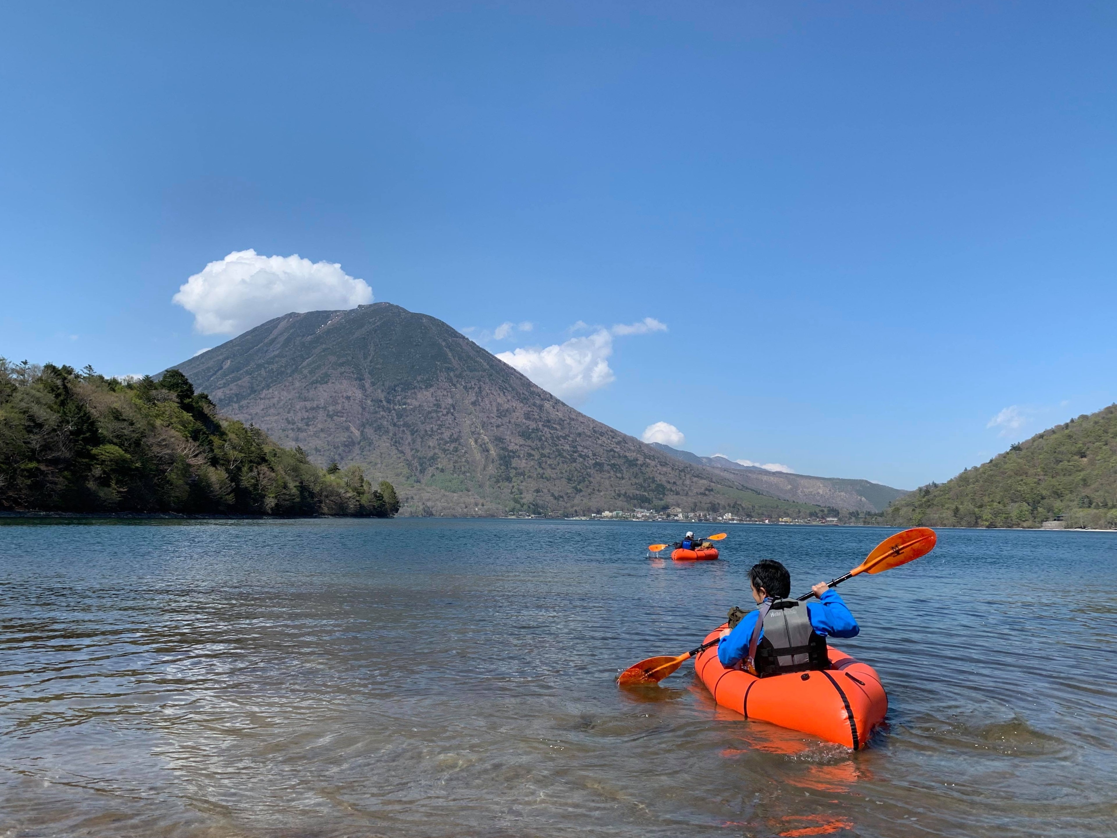 旧英仏大使館別荘や深いブナの森など中禅寺湖の歴史と大自然を感じながら目的地のビーチを目指して湖畔を進みます。誰もいないビーチに着いたら対岸にそびえる男体山と中禅寺湖の絶景を前にし、澄んだ水のビーチから自分で膨らませたパックラフトにて中禅寺湖に漕ぎ出し、湖上から日光の大自然が生んだ山と湖の絶景をパドリングで楽しみ尽くす事ができるツアーになります。