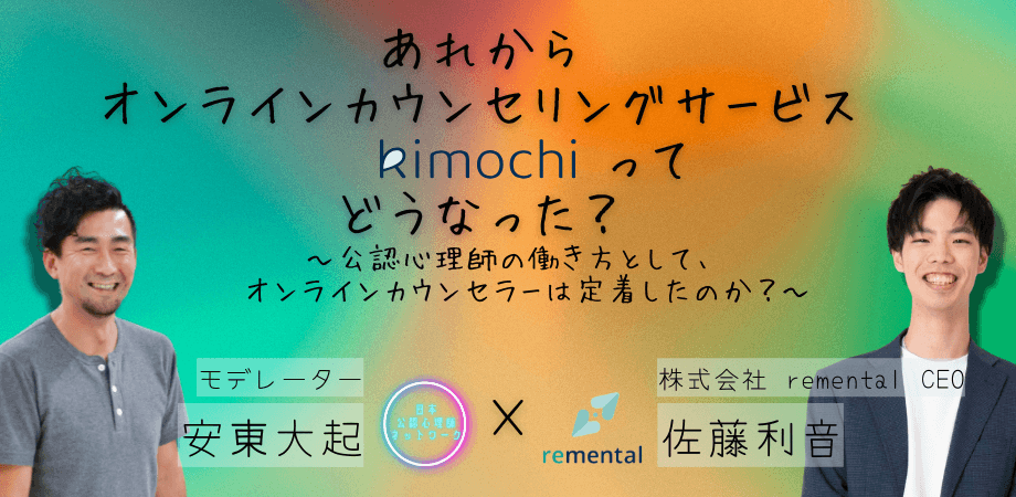 2024年9月4日(水)に開催される、日本公認心理師ネットワークが主催する無料オンラインセミナー「あれからオンラインカウンセリング『Kimochi』って、どうなった?」に当社代表取締役CEO 佐藤 利音が登壇し、オンラインカウンセリング『Kimochi』の現状と心理職としてのオンラインカウンセラーの働き方について講演します。