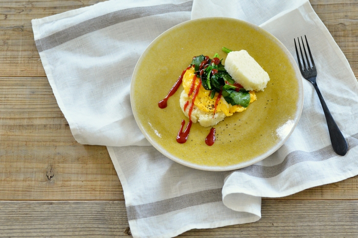 【グルテンフリーなおいしいごはん】スクランブルエッグ添えグルテンフリーケーキ レシピのご紹介★