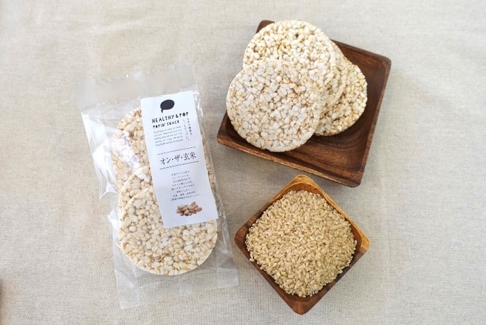 実はこのポンせんは、海外では「ライスケーキ」と呼ばれ、離乳食の粥用に使われたり、パンの代わりにジャムや野菜をのせて朝食に食べられたりしています。日本で販売されている商品もほとんどが海外輸入品ということがわかり、「国産ライスケーキ」として健康志向、美容意識の高い新たなターゲットに商品の魅力や食べ方を提案したいと、2020年にシンプルな原材料と利用シーンを明確にした新ブランド「Healthy & Pop」を立ち上げました。厳選した素材をPOP(はぜさせて)して、もっとポップに楽しんでもらえるように、と社名に立ち返り改めてポン菓子の価値を再定義しました。