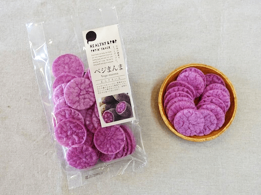 余分な材料は入っていない野菜「そのまんま」の味を味わえて、間食だけでなく子どもの健康に良い簡単なごはん=「まんま」としても親しんでいただきたい。「Healthy & Pop(健康をもっとポップに)」を掲げる当社の自信作、野菜チップス「ベジまんま」にはそのような想いが込められています。