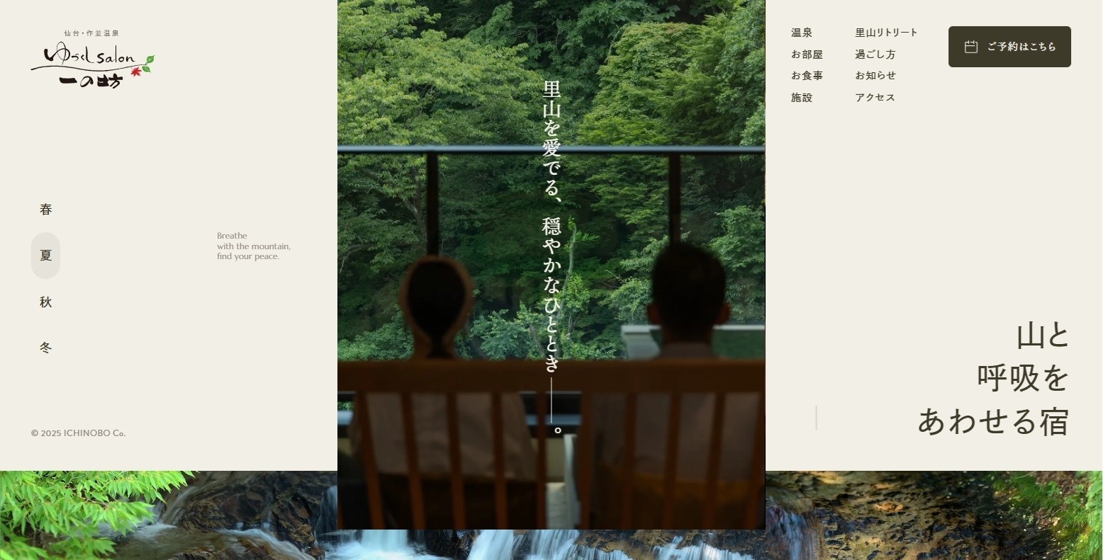 静かな里山と広瀬川源流に囲まれた、作並温泉「ゆづくしSalon一の坊」。四季折々の風景や過ごし方情報をよりスムーズに入手できる、新たな公式サイトを2025年3月31日に公開しました。