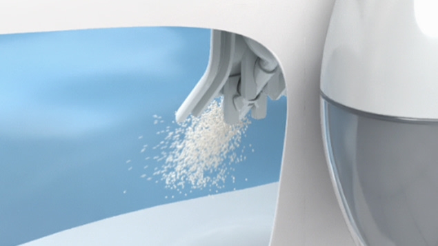 便座に座るとボタンが押され、水面に芳香剤が自動でスプレーされます。水面にバリアを形成し、臭いを封じ込めると同時に部屋をフレッシュな香りにします。