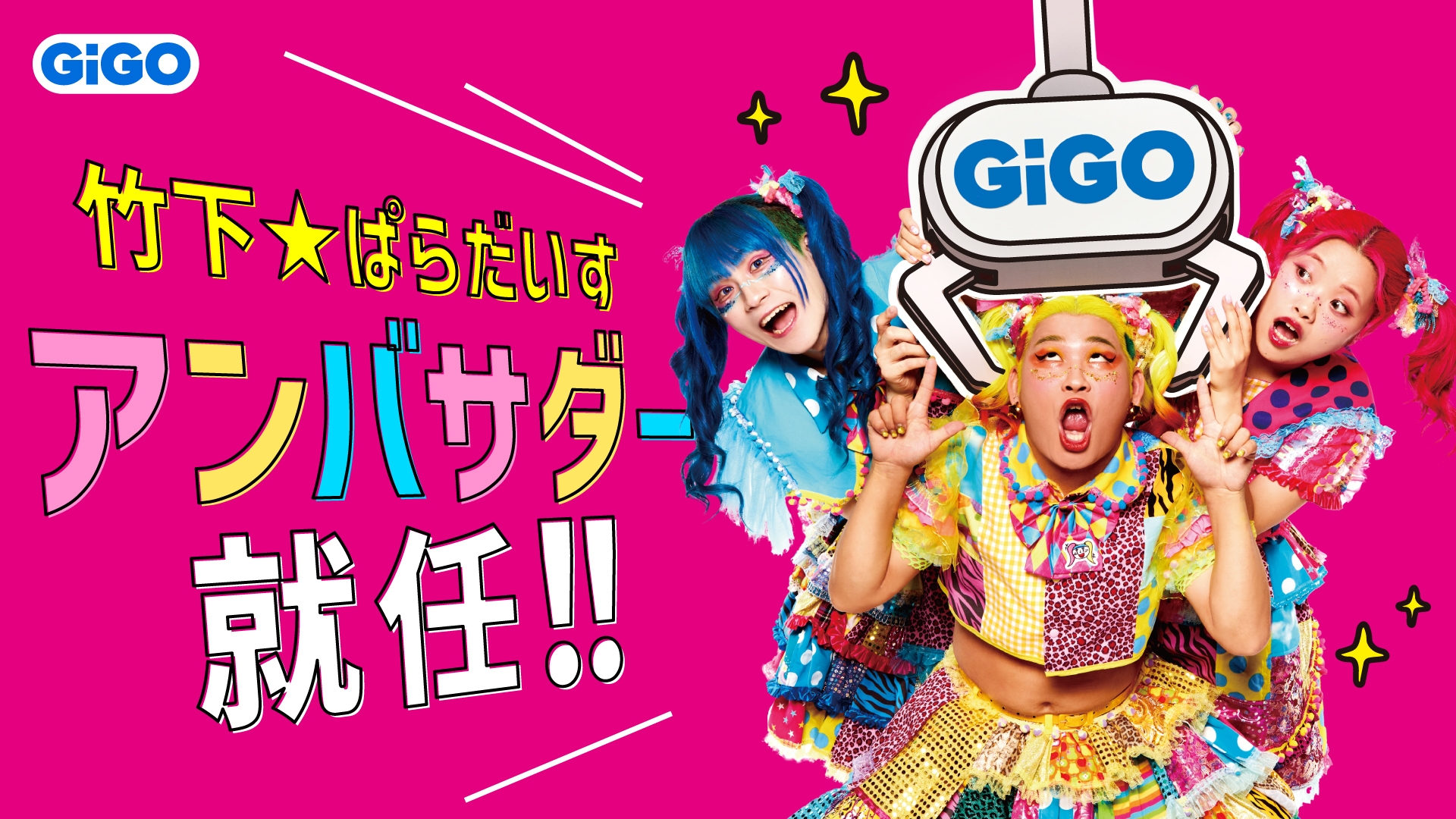 今回、「GiGOクレーンゲームオアシス入間」のアンバサダーとして、3人組の原宿クリエイターアイドル「竹下☆ぱらだいす」が就任。「クレーンゲームオアシス」限定のイベントなど、GiGOならではの楽しさを、さまざまなメディアやSNSを通じて発信してまいります。