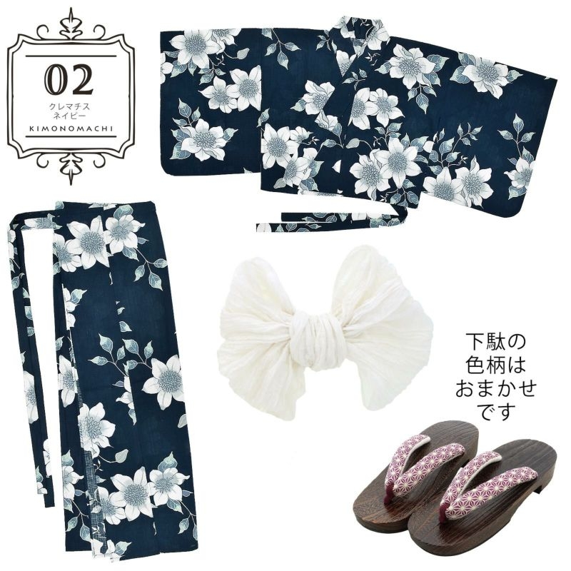 【商品内容】二部式浴衣(上下)、しわ兵児帯、下駄の計3点