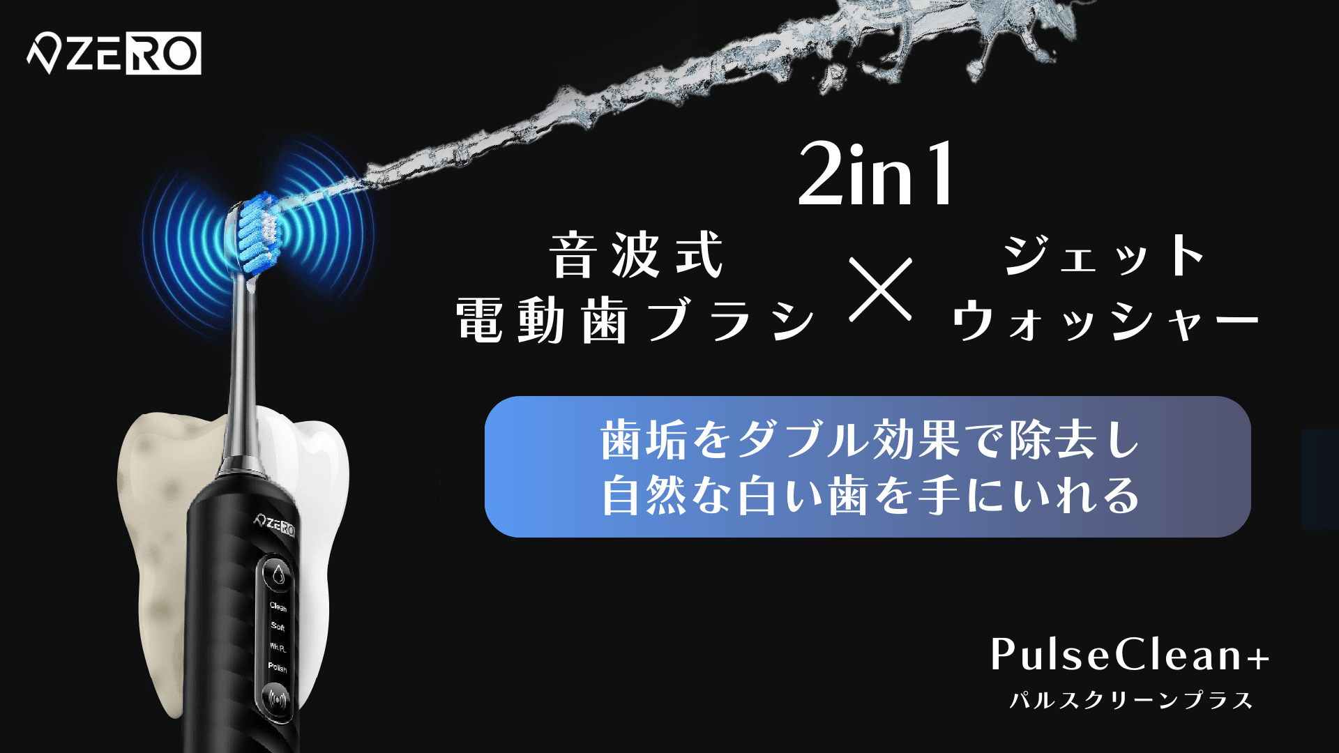 こうした課題に応えるべく誕生したのが、『2in1 音波式電動歯ブラシ&ジェットウォッシャー PulseClean+(パルスクリーンプラス)」です。この製品は、音波電動歯ブラシとジェットウォッシャーの機能を1つにまとめ、効率的に口腔ケアを可能にした画期的なアイテムです。