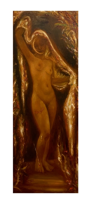 その姿は、イナンナの七つのヴェールや、サロメが脱ぎ捨てた布の先に広がる、一糸纏わぬ物語と響き合います。