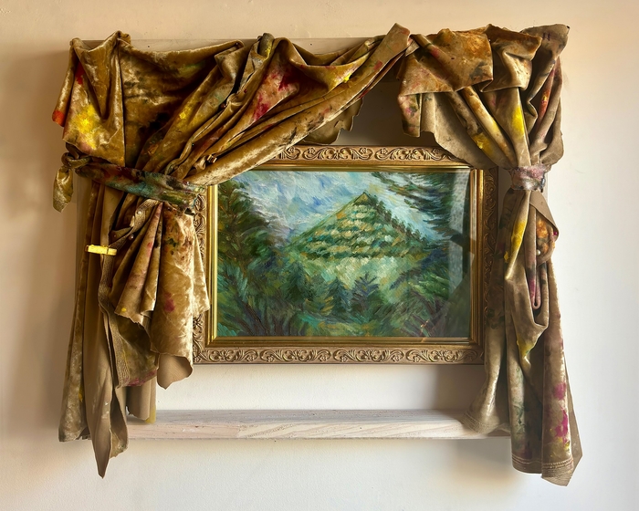 ベロアを使ったカーテン作品は、私が真っ暗な部屋に居た時に「どうしたら光が作れるだろう?」と、もがいて生まれました。壁にカーテンが掛かってるという事は、そこには光が差しこむ「窓」があるということ…!